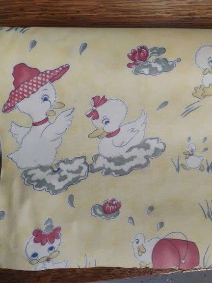 LOT 115 - Bolt of fabric featuring ducklings playing in the rain..unknown quantity on roll.