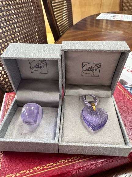 Lalique Coeur Heart Rose motif crystal orchid Opalescent Pendant Necklace.