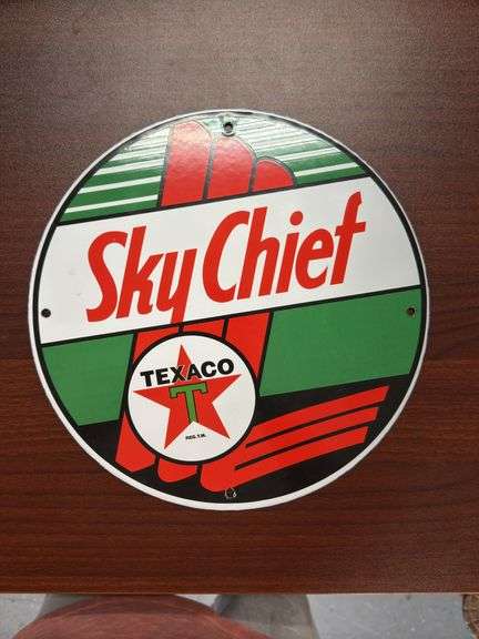 LOT 237 - Porcelain 12 inch sky chief sign - reproduction