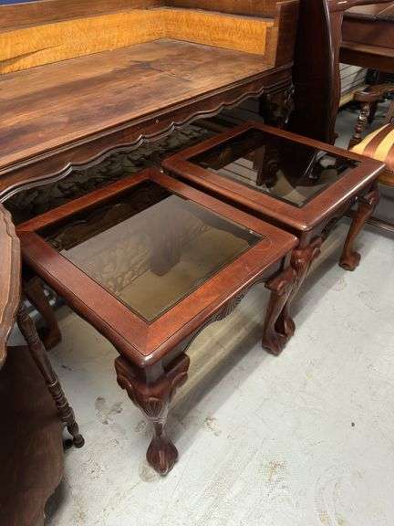 LOT 268 - 2 glass top end tables. all for 1 money