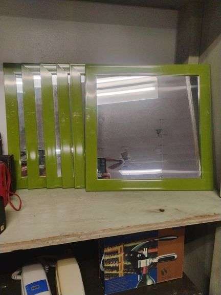 LOT 278 - Six 16" x 18" wall mirrors, framed in green.